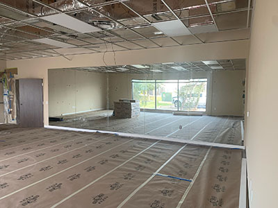 Although we think of studio mirror as an application in an exercise room, walls of mirror can provide the solution for many design dilemmas.  We recommend 1/4″ glass for studio mirror.