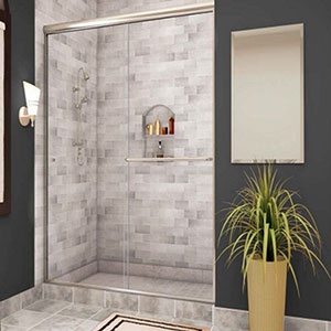 Sliders are available for your tub or walk-in shower. They function by using a header and bottom track which the glass is installed into. The glass options available in 3/16″, 1/4”, or 3/8” thick. Available in Frameless or Euro.